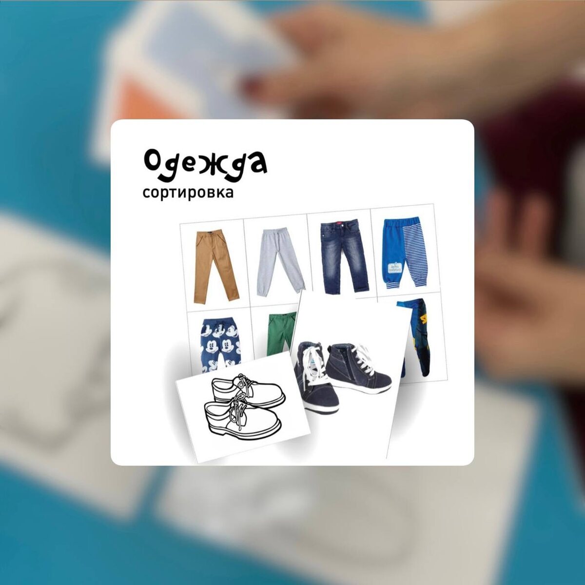 👕🧤🧦 Визуальная сортировка одежды, универсальный набор под большое количество заданий: ✔️44 карточки; ✔️5 видов одежды, на каждый несколько разных примеров для обобщения; ✔️4 большие карточки, как визуальная подсказка; ✔️обучение категориям: обувь-одежда; ✔️комплект носки-трусы белого и синего цвета для сортировки по цветам. Скачать пособие можно на нашем сайте⬇️⬇️ https://abaprint.ru/o/4fbc59/