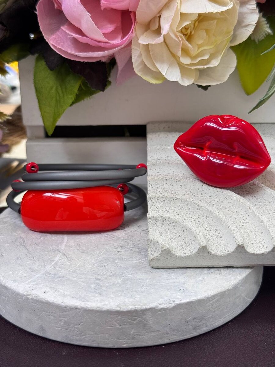 Каучук выбирают за прочность, гибкость и эффектный контраст со стеклом. Он не боится воды, не тускнеет и делает любое украшение визуально современным.❤️ Кольцо 5100-15%=4.335 Браслет 3000-15%=2.550 ✨Нажмите для заказа ✉️ Нажмите чтобы задать вопрос