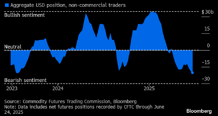 Ставки крупных спекулянтов против доллара достигли максимума с июля 2023 года