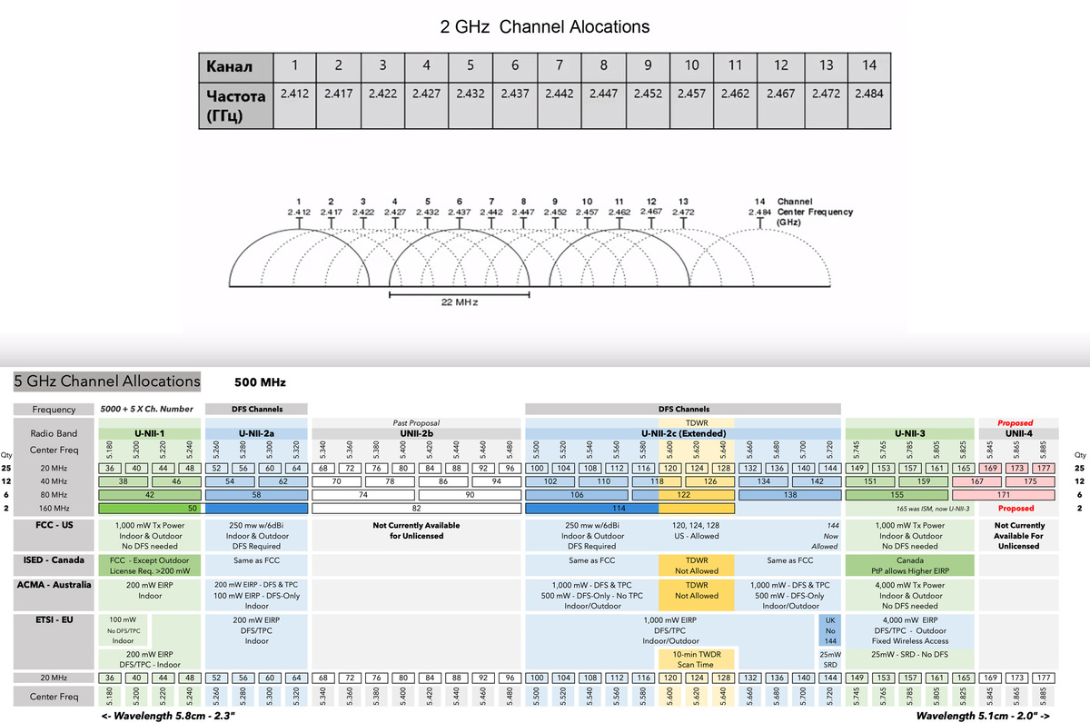 Частоты WiFi каналов для OpenIPC