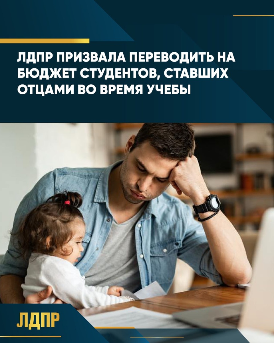 🔝 Председатель ЛДПР Леонид Слуцкий предложил предоставить право перехода на бесплатное обучение студентам, ставшим отцами в период получения среднего профессионального или высшего образования. Сегодня таким правом обладают только женщины.