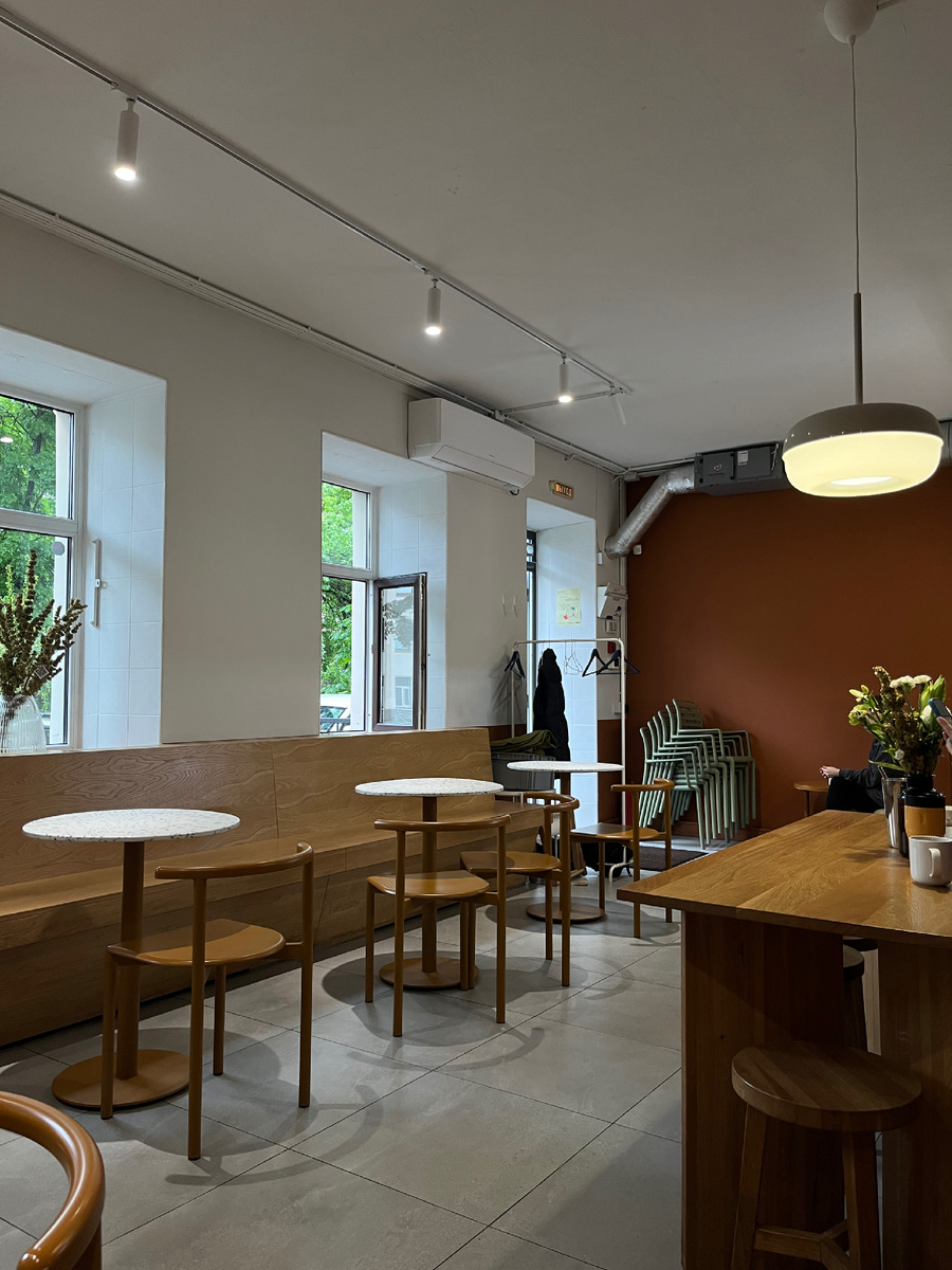 В последней рабочей поездке в Петербург решил поискать небольшие ламповые кофееньки с фильтрами и минимальной кухней, где можно чувствовать себя «как дома». Пошел в сторону заведений почти прямо с поезда, сразу после заселения на Невском. Выдвинулся пешком в эту сторону, но уже на половине пути попал под все виды дождя и в первый раз за 3 поездки ощутил эту Питерскую атмосферу. Промок, промерз, попсиховал, но добрался :) Сразу отмечу, что везде брал фильтр-кофе и во всех заведениях чашки были очень ровные, ни разу не было "мутных" перезаваренных чашек. Все молодцы, потому коф отдельно расписывать не буду. Нашлись почти в центре Петроградского района, во дворе напротив сада Дома милосердия. Небольшая посадка внутри и минималистичный интерьер, на фото видно стулья для летки перед входом. Компактное меню по напиткам: 6 основных позиций: фильтр, эспрессо, капучино, латте, флэт уайт и раф - прям классика без добавок, 4 не кофейные (матча, какао,чай,фреш) и 4 сезонных (здесь уже фильтр сморо