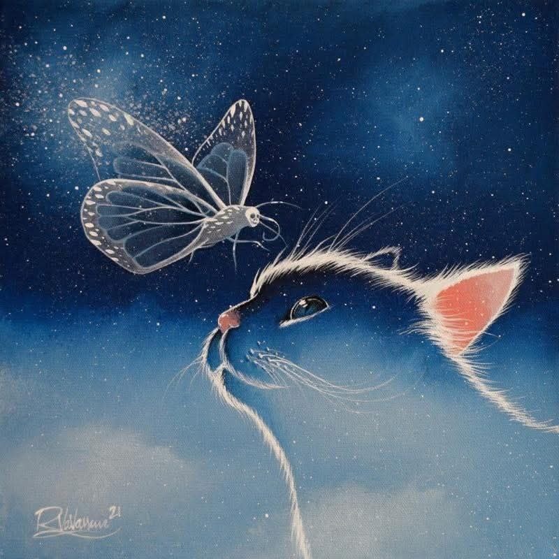 Рафаэль стал известен всему миру благодаря мистическими картинами, которые изображают кошек в фантастических пейзажах.