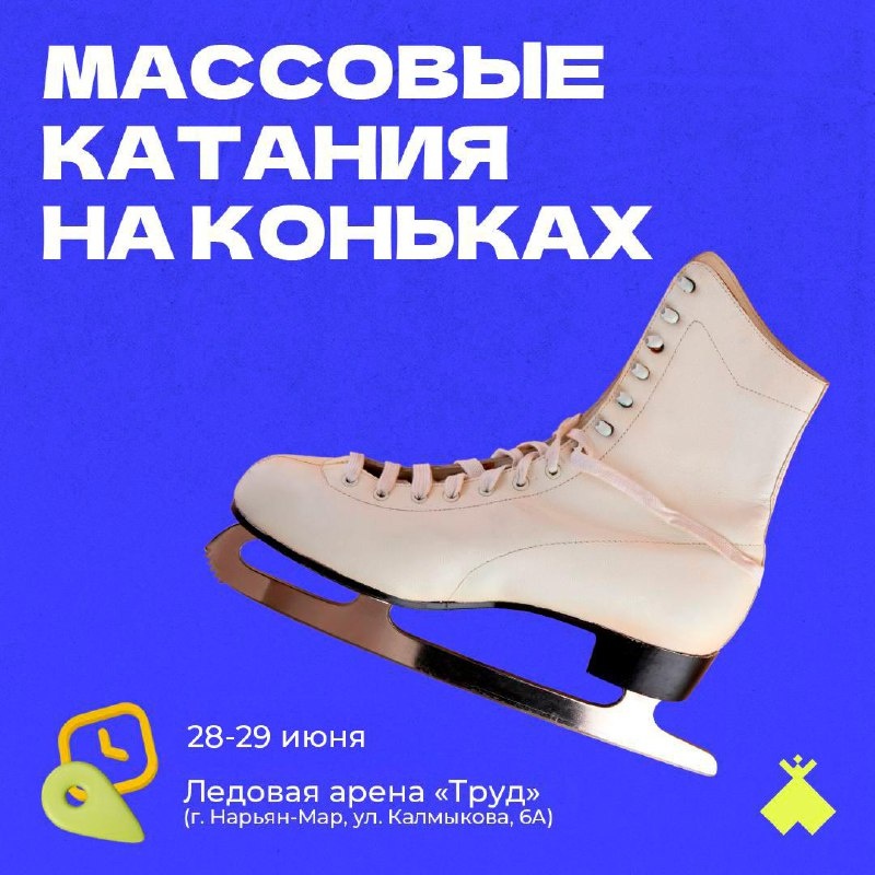 ⛸️ Сеансы массового катания в СШОР «Труд» (0+) 📍28 и 29 июня 📍Ледовый дворец «Труд» (г. Нарьян-Мар, ул. Калмыкова, 6А) 💸Уточнять Приходите на массовые катания на коньках в эти выходные! Суббота, воскресенье с 20:30 — 21:30. Приобрести билеты можно онлайн здесь. 🥰 Не забудьте подписаться на канал