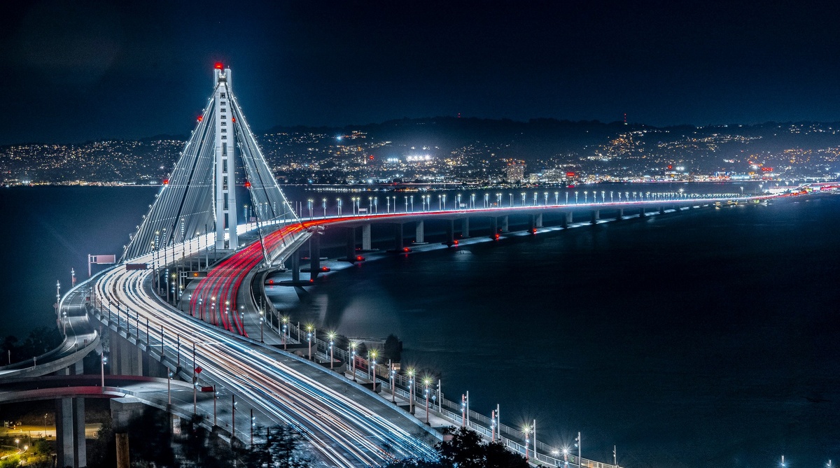 Он представляет собой комплекс мостов, по которому ежедневно проезжает до четверти миллиона транспортных средств. Состоит из двух частей: западной подвесной и восточной консольной, которые соединены между собой тоннелем под островом Йерба-Буэна. Общая длина моста составляет 7,18 километра.
