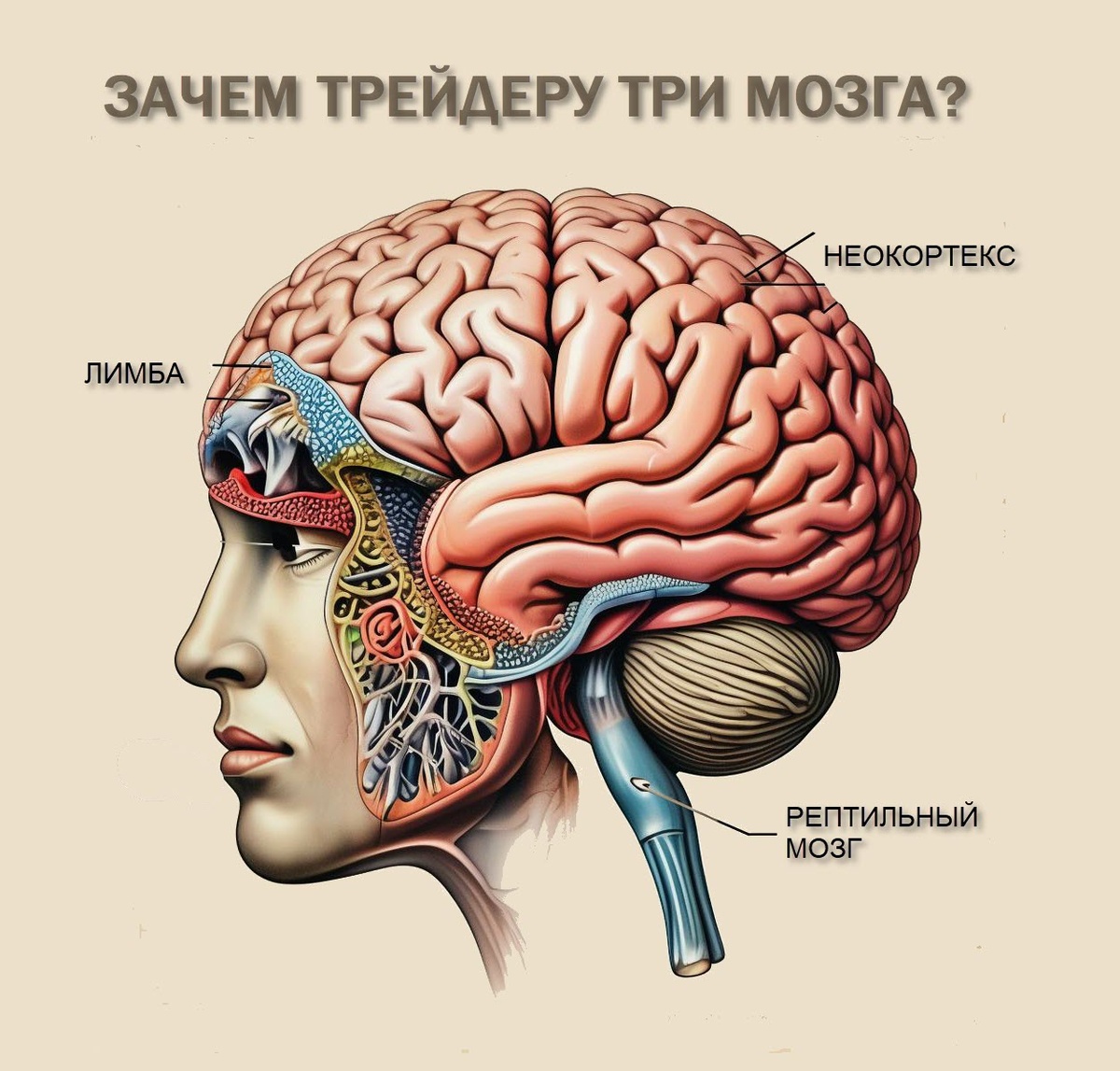 Современный мозг (неокортекс) ответственен за высшие когнитивные функции: мышление, принятие решений, анализ и обучение. Именно благодаря этому участку трейдер способен разрабатывать стратегии, анализировать рынок и адаптироваться к новым условиям.