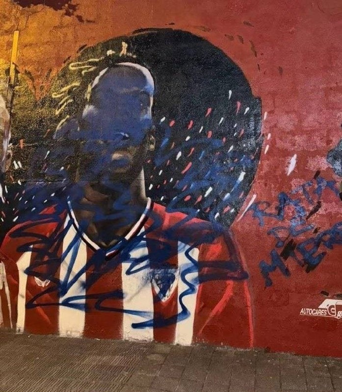 «Чёртова крыса» 🤯 Фанаты «Атлетика» вновь испортили мурал с изображением Нико Уильямса, который близок к переходу в «Барселону». Это случилось в первый же день после его реставрации, сообщает Marca. Настенная картина была частично закрашена синей краской, а рядом появилась оскорбительная надпись: «Чёртова крыса». @russian_rt_sport