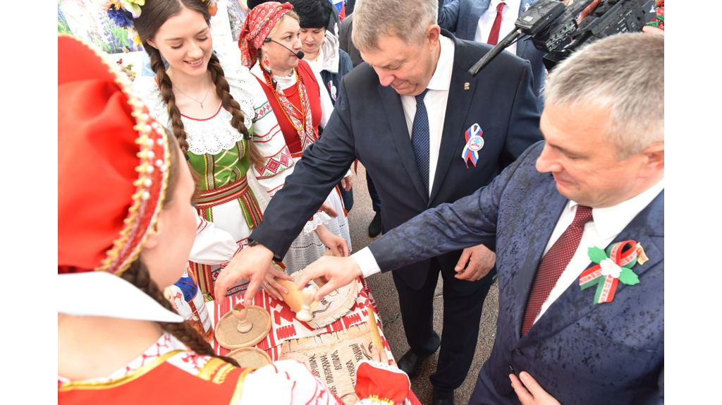 В Гомеле продолжается праздничная программа в рамках фестиваля «Славянское братство-2025». Брянская делегация осмотрела Город мастеров на центральной площади. Здесь губернатора Брянской области Александра Богомаза и председателя Гомельского облисполкома Ивана Крупко встретили традиционными караваями и 80-метровым славянским пирогом. Его испекли брянские и гомельские хлебопеки как символ юбилея Великой Победы, единства и дружбы наших народов. Затем состоялось очень символическое событие. Как отметил глава Брянщины, «важнейшим достоянием культуры и самобытности, объединяющим наши народы, является письменность, а первыми памятниками древнеславянской письменности были берестяные грамоты». Руководители Брянской и Гомельской областей поставили печати на символических берестяных грамотах, тем самым скрепив многовековую дружбу. В Городе мастеров Александру Богомазу и Ивану Крупко вручили в дар больших матрешек, которые символизируют крепость семейных уз и преемственность поколений. На главной