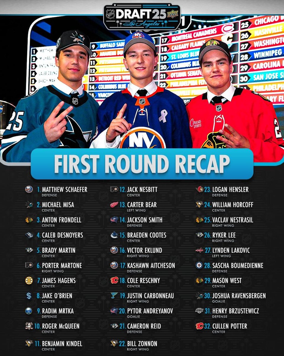 1️⃣Защитник Мэттью Шефер стал первым номером драфта и отправился в «Нью-Йорк Айлендерс».