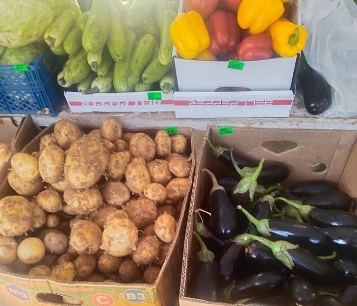 Сколько же он нам потрепал нервов в этом году! Помните, до какой рекордной отметки доходила стоимость одного килограмма? Напоминаю — до 120 рублей. И вот в конце июня цена упала до 60 рублей за 1 кг. Картофель местный, молодой, вкусный. Хотите соль на рану? Взял на Трусовской стороне мелкий картофель всего по 25 рублей/кг. Помыл дома, даже кожуру молоденькую не чистил. Замариновал немного и в духовку. Получилась отличная картошка по-деревенски. И главное — недорогая. Ладно, идём дальше. Про помидоры и огурцы