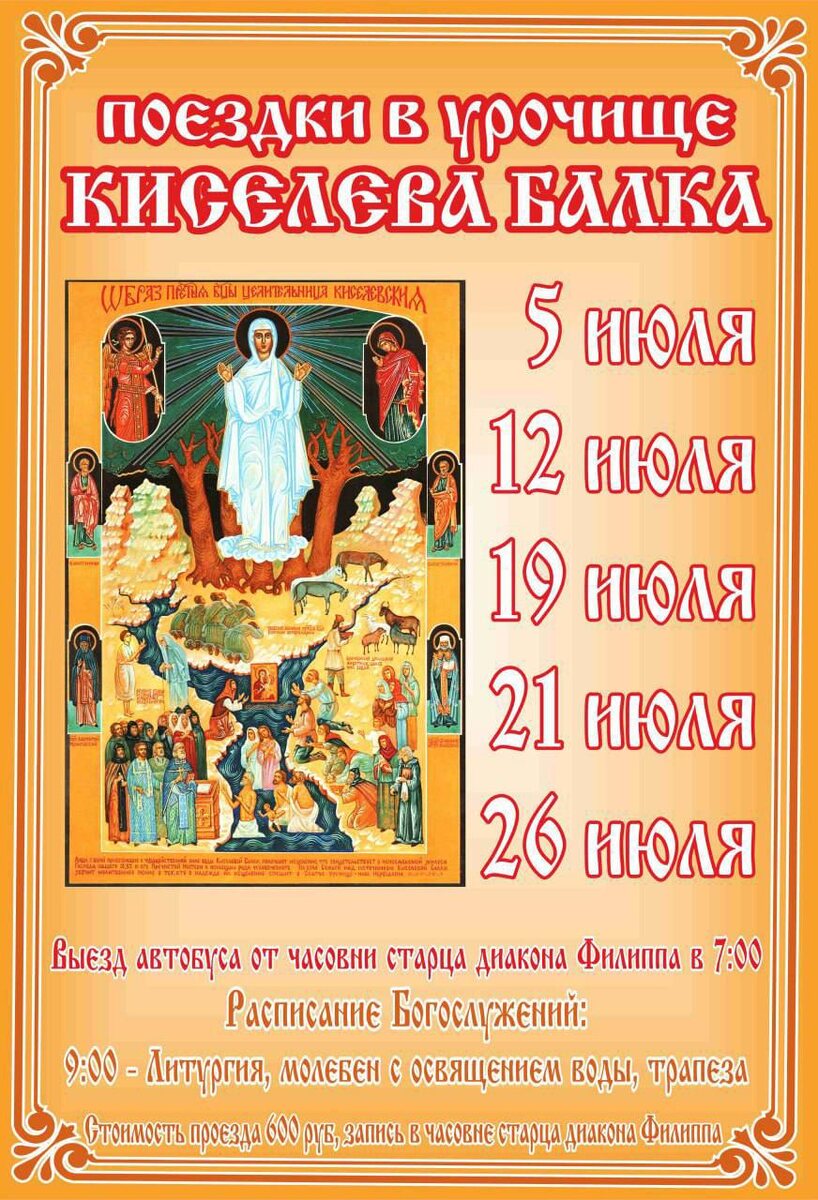 КИСЕЛЕВА БАЛКА! Паломнические поездки к святым целебным источникам! 5,12,19,21, 26 июля! В программе посещения: Божественная литургия (исповедь и причастие), водосвятный молебен, окунание в целебные источники, монастырская трапеза. Стоимость 600 руб. Предварительная запись в подворье Всех Святых г. Луганска (часовня старца Филиппа). Ул. Днепровская, 45а.