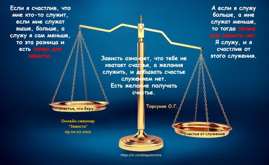 ЕСЛИ Я СЧАСТЛИВ, что мне кто-то служит, если мне служат выше, больше, а служу я сам меньше, то эта разница и есть почва для зависти.