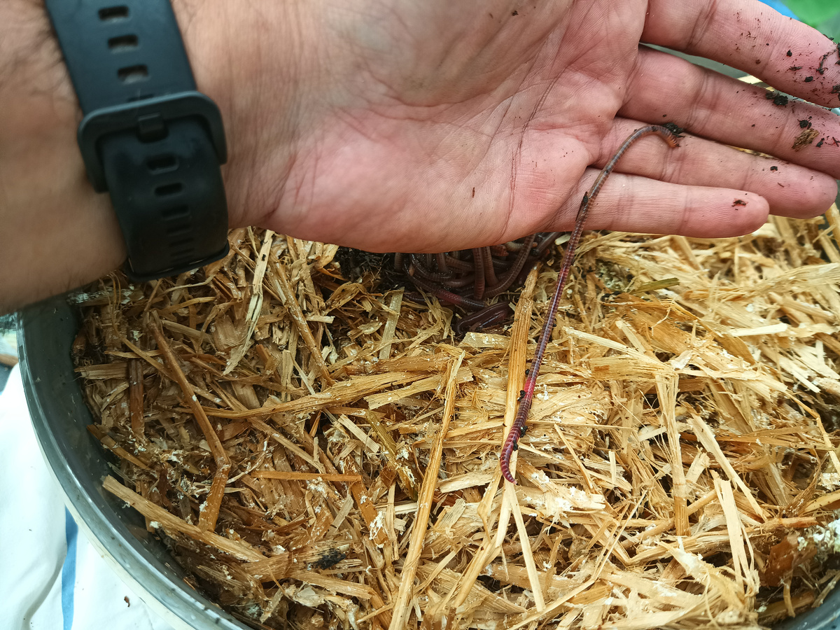 С чего все начиналось. Спустя 2 месяца. после того, как черви были помещены в более просторные емкости - решено перебрать грунт, за одно и посмотреть есть ли кто живой. Питание вносится регулярно (раз в неделю, а то и реже), но особо никого не видно (шутка). Из плюсов, аппетит у этих товарищей замечательный, раньше я старый хлеб разламывал на мелкие кусочки, плюс добавлял старую муку. Теперь особо не мудрствовал, убрал сверху слой соломы, разгреб лунки на глубину 10-15 и туда помещаю почти целые ломтики хлеба, даже с плесенью - все поедалось червями- пусть не сразу, но постепенно. Живут они у меня при температуре около +15, а в весеннее время около +6. Так что комнатные температуры червя устраивают, !но! ждите появление клеща. Прикопка корма, как раз, в какой-то степени будет тормозить популяцию клещей. Чем температуре ниже (в районе +6,+10), тем клеща меньше, и наоборот. Т.к. закладка субстрата шла послойно, слой соломы, слой кокосового субстрата, то и солому черви перелопатили хор
