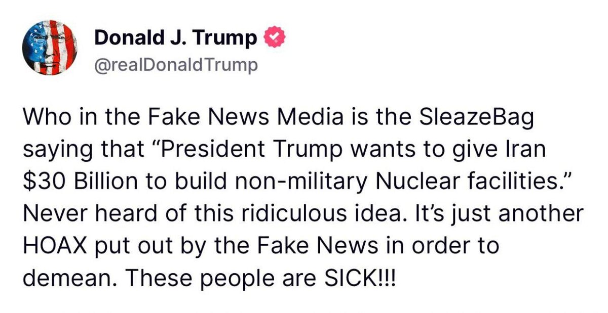 Трамп опроверг сообщения о готовности передать Ирану 30 млрд долл. на гражданскую атомную энергетику
