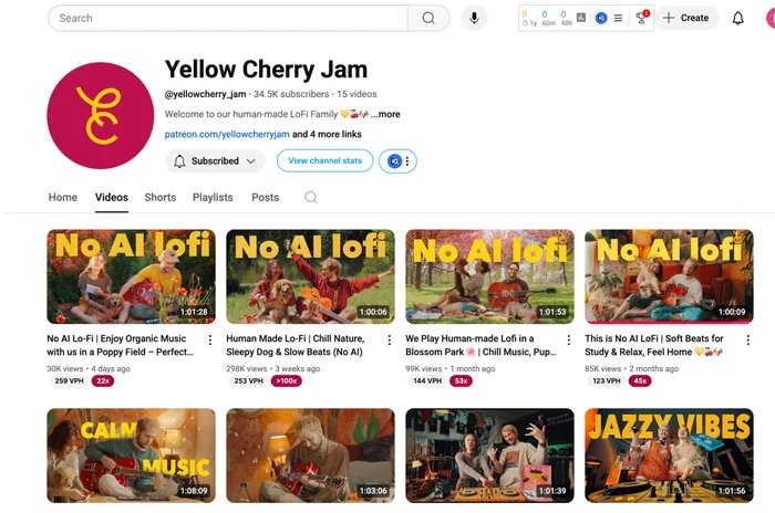 Продукты, которые работают в основном через AI, становятся элитарными или особенными, если в них появляется ручной человеческий труд. Например, я бы не сказал, что LoFi музыка повально делается только через AI, нет, но однозначно есть такая тенденция. И вот что я вижу — канал, который позиционирует себя "LoFi без AI", где сударь в прямом эфире создаёт LoFi музыку, да ещё и на аналоговых инструментах, да ещё и рядом с ним девушка, которая играет с щеночком в каких-то очень уютных локациях. И на это хочется смотреть. Так что теперь для проектов возможна отстройка за счёт "Мы без AI, у нас только человеческое тепло" Мой тг-канал