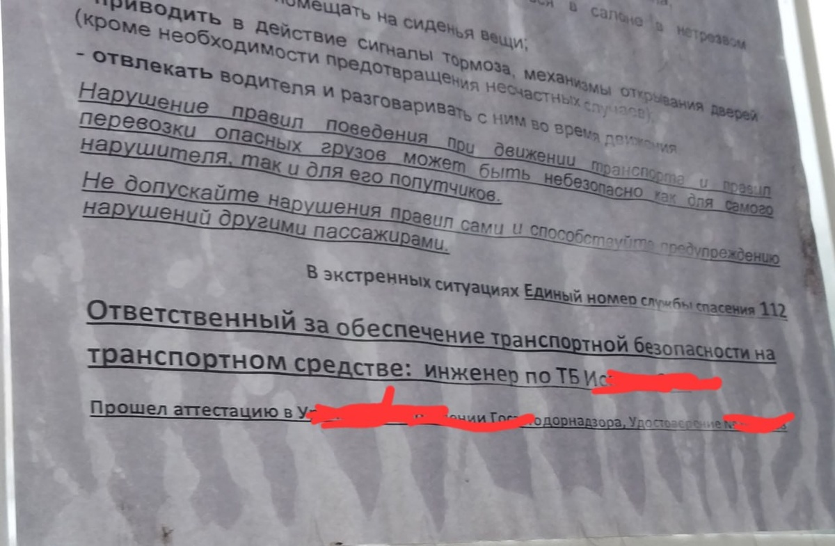 "Ответственный за обеспечение транспортной безопасности на транспортном средстве: инженер по ТБ