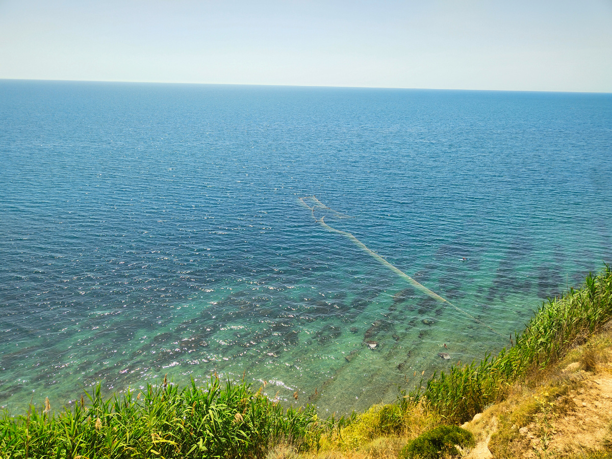 Ветер сегодня спокойный, днём жарко, около 30°С, а на завтра передают похолодание и дождь. Вывод - нужно ехать на море сейчас, а дела отложить. Так мы и сделали. Когда нет на море ветра, значит оно чистое. Мы всегда смотрим на ветер прежде чем ехать на каменный пляж. Плаваем мы с масками, нужна отличная видимость. Видимость ближе к идеальной, будет здорово, видно невооружённым взглядом! Мы взяли с собой Альфу и Берту. Они с радостью согласились с нами поехать гулять. Народа на пляже много для данной ситуации с мазутом, не ожидала я такого скопления людей, если честно. Народ прибывал после обеда, приходили, размещались. Нам с собаками приходится уходить дальше от людей, чтобы они никому не мешали. Вот только позже мы перестали быть одинокими на своем выбранном месте на пляже))) Собаки взбаламутили немного, подняли со дна песок, пыль со скал, что там ещё может быть на дне? Мы плавали с масками в море, видели много рыбок, больше чем обычно. Рыбы плавали косяками, разного размера и цвета