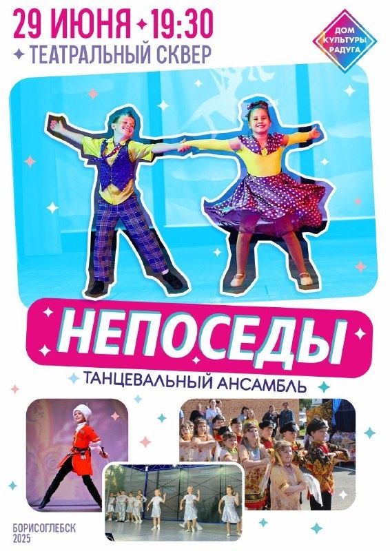 Первый летний месяц готов проститься с нами, но это не повод для грусти, потому что в нашем городе есть зажигательный проект «Настроение — лето»! 29 июня в 19:00 танцпол под открытым небом в очередной раз будет ждать юных жителей города на детскую дискотеку. По традиции её проведёт команда «Боршоу». А в 19:30 хореографический ансамбль «Непоседы» детского дома культуры «Радуга» приглашает всех на концерт «Танцуй и пой, пока молодой!» Этот вечер будет наполнен уникальными танцами и яркими выступлениями! Приходите и проведите его вместе с нами!