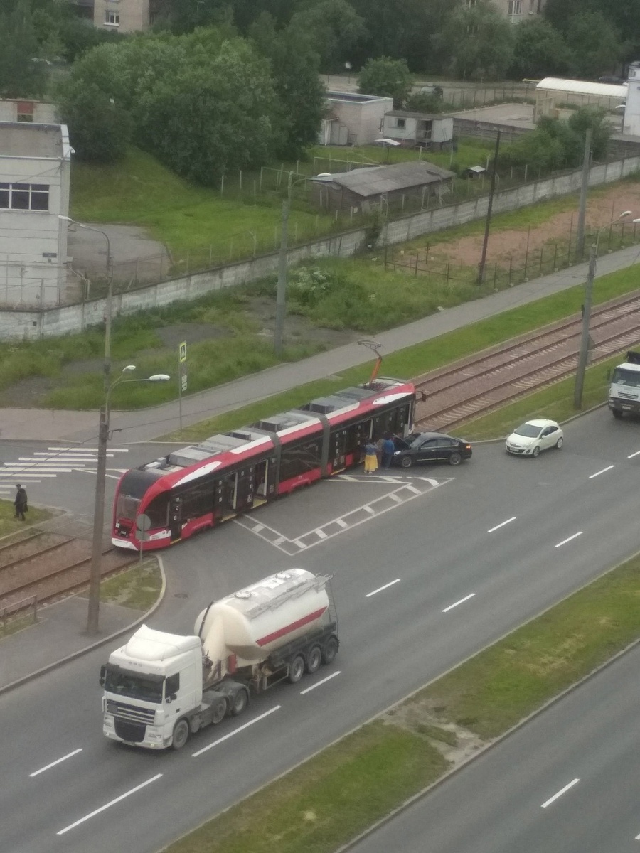 Счастливые трамваи вышли на проспект Обуховской обороны, после длительного ремонта путей, но далеко не уехали.