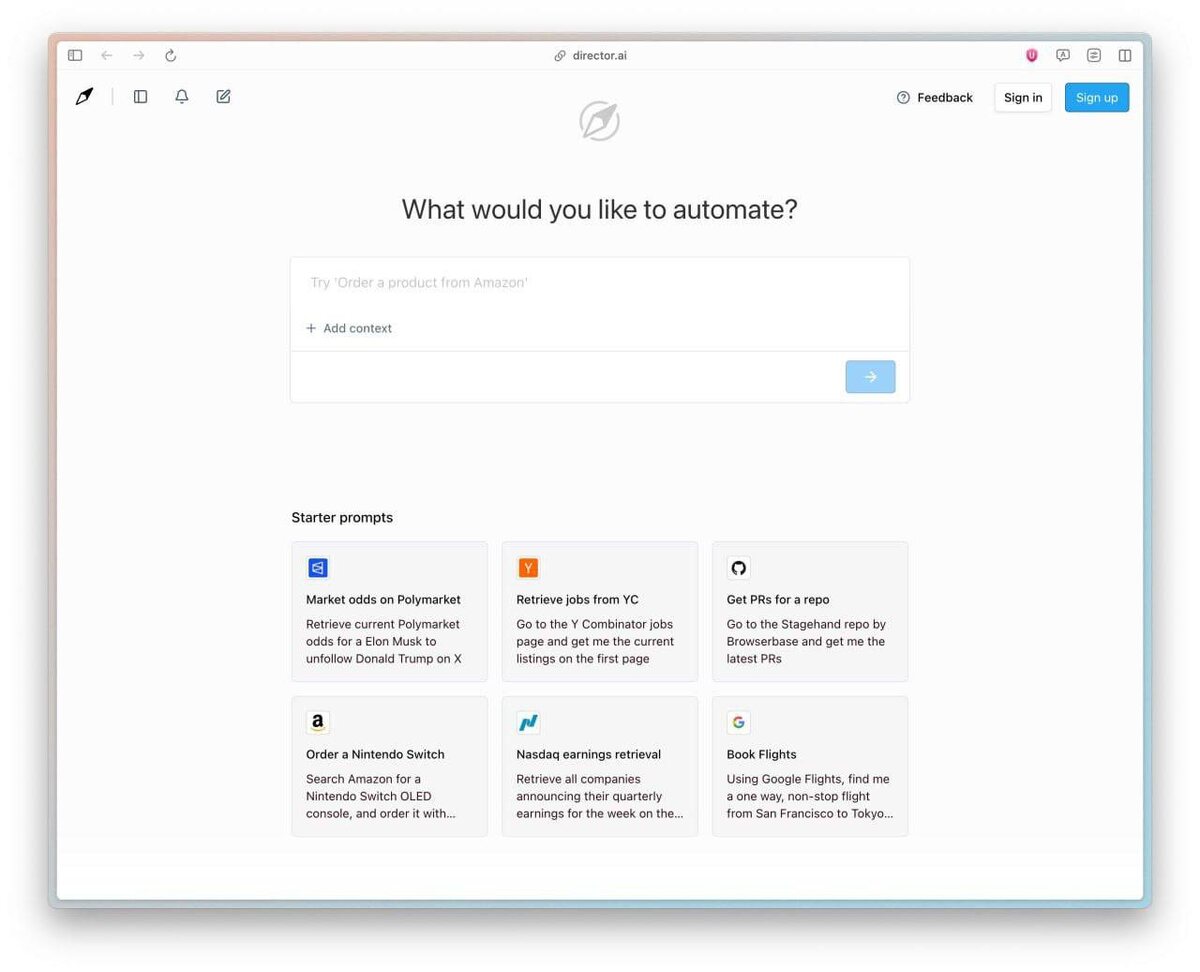Поручайте задачи ИИ: новый бесплатный агент Director AI Представляем Director AI — бесплатный ИИ-агент, который помогает находить билеты, совершать покупки онлайн и извлекать данные с любых веб-сайтов. Простые задачи, такие как поиск и покупка билетов, он выполняет за считанные минуты. Работает прямо в вашем браузере. Готовый код скрипта можно скачать и использовать на любой платформе. NeuroFlux #ИИ #Автоматизация #Технологии