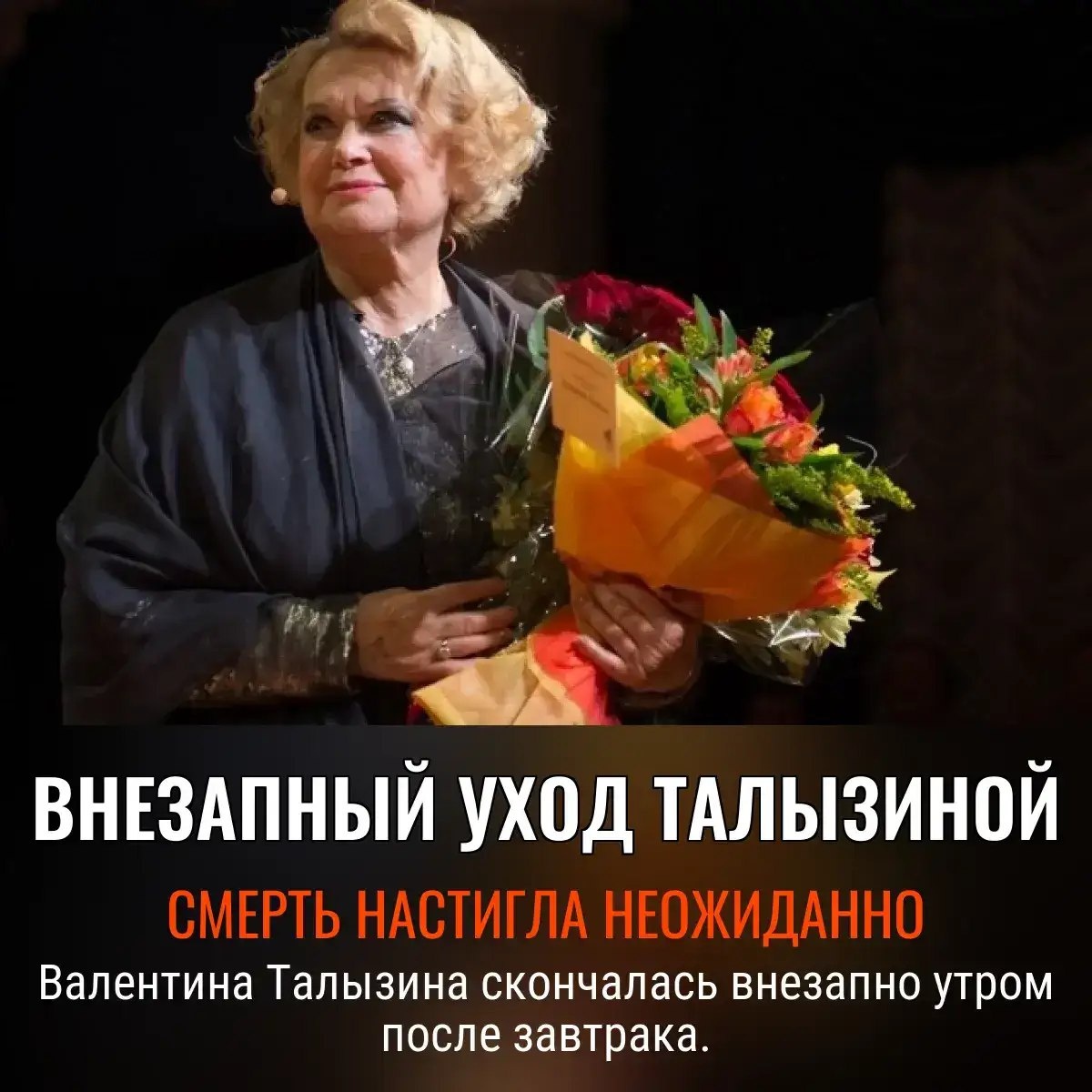 💔 Настоящая ирония судьбы: Валентина Талызина ушла из жизни абсолютно внезапно – еще накануне обсуждала дачные перспективы, строила планы, а утром позавтракала и... Всё. 67 лет театру, 160 ролей — не каждый сериал столько выдерживает. По словам её друга Владека Дармана, никаких «тревожных звоночков» вчера не было. Похоже, Судьба решила, что работа окончена. 🥀 Моссовет прощается, зрители шокированы., Следите за новостями 📩