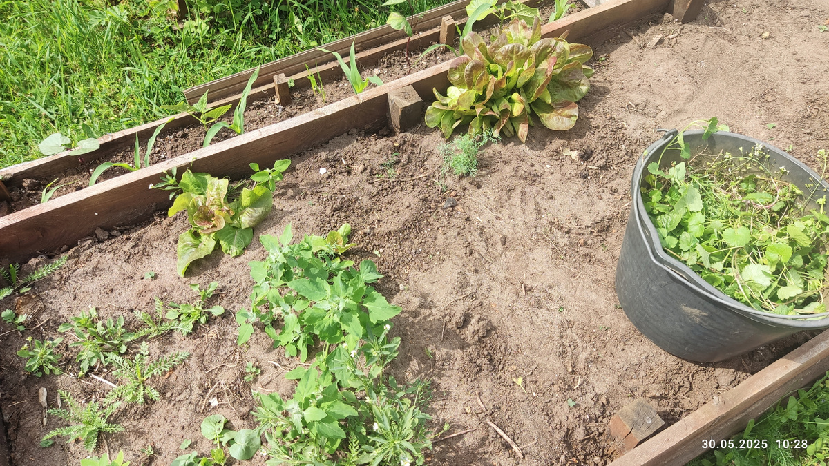 Ну ладно, добавим тот самый человеческий фактор и причуды погоды и не 100%, а 99% 😄 Такая пересадка подходит практически для любых, даже самых капризных растений. Я её применяла на кабачках, тыквах, виолах и других цветов, салатах и свёкле. Ни одного выпада 👍🏻 Кабачки, тыквы и виолы пересаживала так методом перевалки, поэтому тут ещё и это сыграло свою существенную роль, но тем не менее. Ведь наверняка у вас было, когда высадили бахчёвые даже очень аккуратно, а они или «болеют» какое то время, или ещё хуже погибают. Так вот если сделать как я опишу ниже они не будут болеть и продолжат своё развитие на новом месте, как ни в чём не бывало. А вот салаты и свёклу, как и некоторую рассаду цветов я пересаживала из общей ёмкости и сильным повреждением корневой. Например вот такой сюрприз меня ждал на грядке, когда я стала её готовить к посеву редиски. Когда проплывала обнаружила салат, который вырос самосевом. Как и откуда он там - загадка. Грядка осенью не просто перекапывалась, на дно я