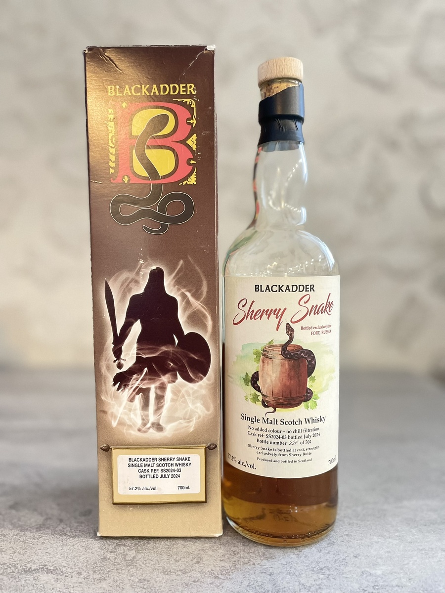 Как я уже писал неоднократно, одной особенностью негоциантов является то, что даже виски с одним названием, но разных партий выпуска, может быть разным. Поэтому их всегда интересно пробовать и разбираться, как велики отличия. Три года назад я впервые познакомился с «хересной змеёй» и мне она очень понравилась. Это был яркий, мощный, крепкий хересный виски – фактически «хересная бомба», получившая у меня высокую оценку (обзор есть на канале, можно будет найти, если интересно). Но она, естественно, закончилась, ведь каждая бутылка виски должна быть открыта и выпита, иначе зачем. И сейчас, компания FortWine привезла новый выпуск «хересной змеи». Естественно мне стало интересно попробовать, чтобы составить своё мнение. Итак, новый выпуск был розлит в июле 2024 года, бочка имеет номер SS2024-03, крепость 57,2%abv. Визуально могу сказать, что новый релиз немного светлее предыдущего и имеет крепость ниже, у старого она была 61,9%abv. Но, самое важное это то, что же находится в бутылке. Это я