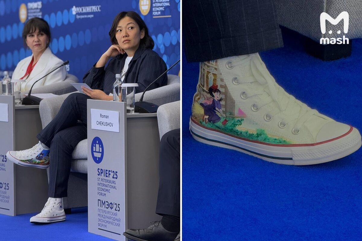 Mash на стиле докладывает: Татьяна Ким (глава WB которая) пришла на ПМЭФ-2025 в кастомных кедах с принтом из аниме Миядзаки "Ведьмина служба доставки". С — символизм. Источник — Mash
