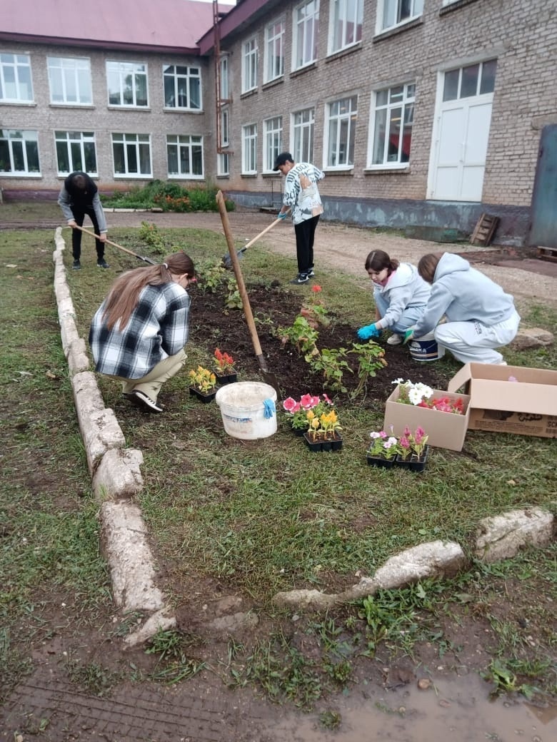 К всероссийской акции подключились ученики городской школы №2. В Туймазах в городской школе № 2 на базе летнего трудового лагеря провели акцию «Цветы Победы», приуроченную ко Дню памяти и скорби. В рамках акции школьники оформили клумбу, где высадили 102 петунии и целозии. Фото: соцсети школы № 2.