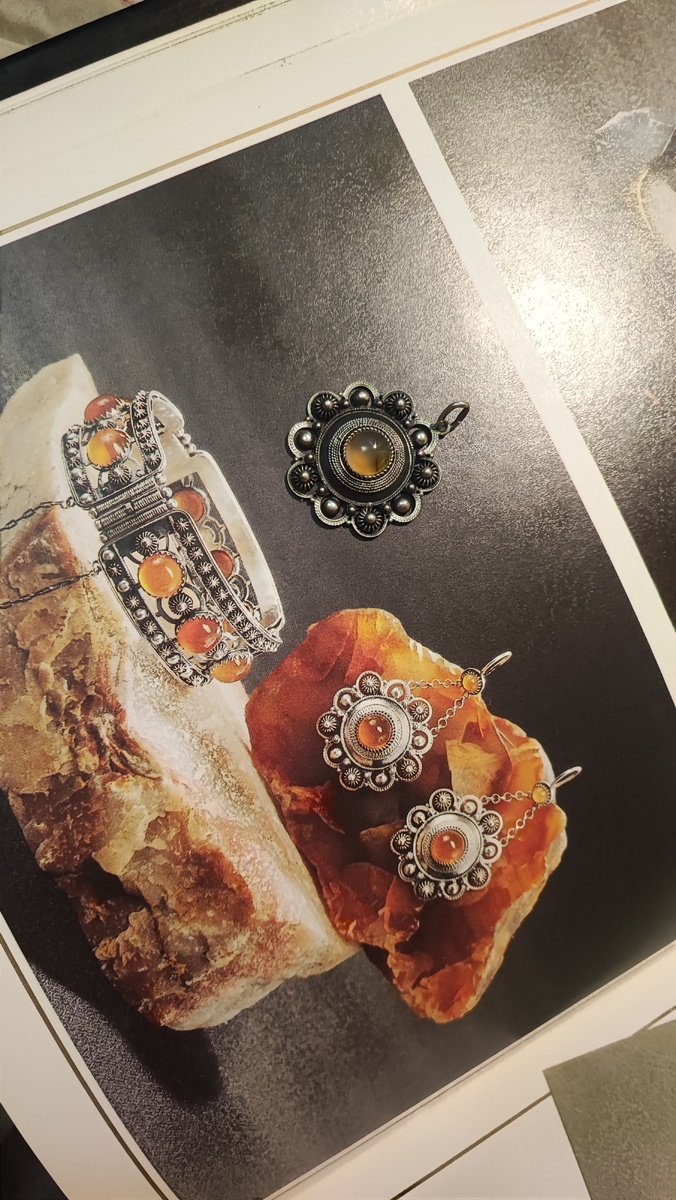 Очень приятно, когда в твоих лапках оказывается предмет из каталога или из рекламы... :0)) Тогда его можно сфоткать на фоне иллюстрации... Свердловск... Вторая - с нефритом. Современная: Редная вещь среди "любимых". Так-то меня на стараенькие тянет обычно... :0) Нет, это реально - Северная Чернь, а не Египет... И - да. С позолотой. Экспортный вариант? :0)) И - костромские! Это стекло, а не янтарь А вот из полтинника советского: Ну, вот...
