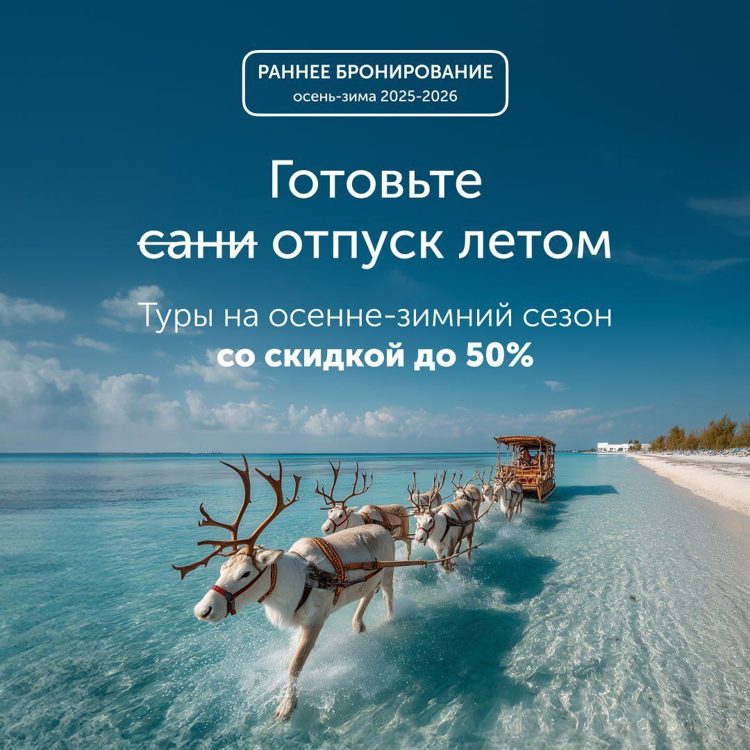 Мы, конечно, не Дед Мороз, но подарок для вас приготовили — зимний отпуск со скидкой до 50%🔥🔥🔥 ‼️Объявляем о начале раннего бронирования на осень-зиму 2025-2026‼️ Это значит, что уже сейчас вы можете забронировать тур в Турцию, Египет, ОАЭ и Таиланд по приятным ценам 😉 Купайтесь всю осень и зиму в лучах яркого солнца на любимых пляжных курортах 🌊 💥Скорее звоните/пишите: +79253393233 Коломна +79263393233 Рязань +79253383233 Сочи +79993383233 Москва 💻tudasudatur.ru