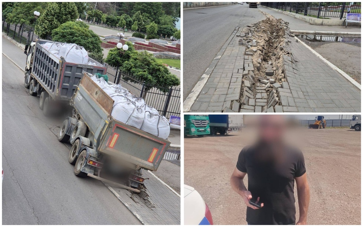 Иногородняя фура в хлам раскурочила тротуар у астраханского театра