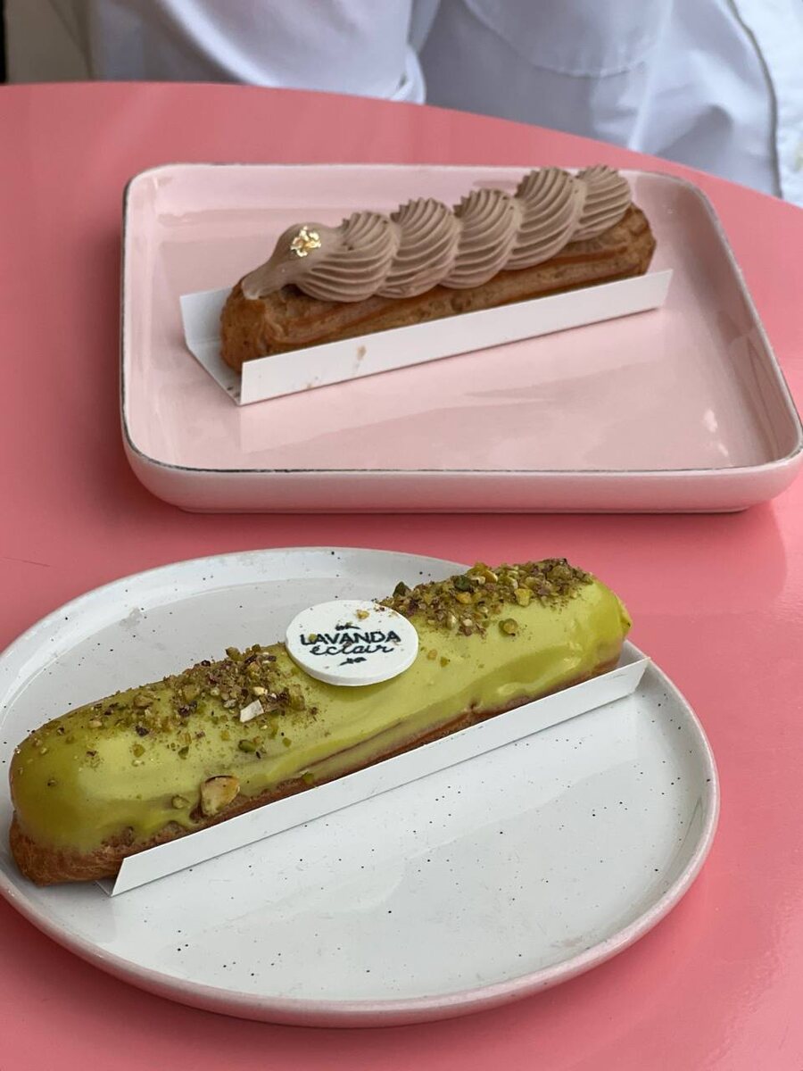 Вчера мы с Сёмой ходили на выпускной моей художественной школы🎓 Хорошо провели время, пофоткались, посмотрели работы всех учеников и преподавателей. Поучаствовали в розыгрыше, — Сёма выиграл футболку, которая мне по размеру, мы решили, что я буду в ней писать маслом (измажу ее полностью). После мероприятия поехали в место неподалеку, отмеченное на нашей карте как «следует посетить». Lavanda Eclair нас абсолютно не удивили, хотя оценка 5,0 — что феерическая редкость. Мы взяли фисташковый эклер и вишня-шоколад. Первый на вкус, как обычный заварной эклер, второй имел внутри булочки просто парочку вишенок, а сверху а-ля шоколадный крем-чиз. Мы заключили, что мои эклеры вкуснее (естественно))) и пришли к выводу: надо открывать самим эклерную, ибо зачем выдумывать кучу бесполезных начинок за оверпрайс, когда сам по себе этот десерт довольно прост и полноценен🙂