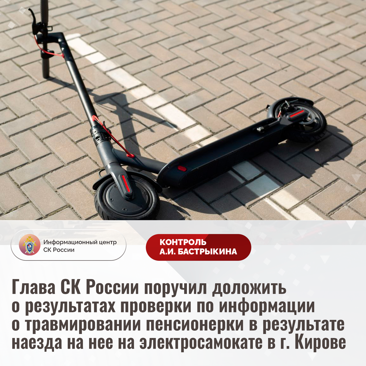Глава СК России поручил доложить о результатах проверки по информации о травмировании пенсионерки в результате наезда на нее на электросамокате в г. Кирове