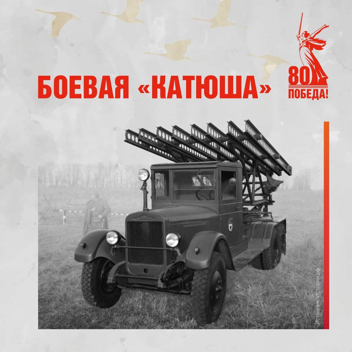 Оружие, которое повлияло на ход событий войны 1941–1945 годов Сегодня познакомим вас с интересными деталями о легендарной смертоносной машине, ставшей символом непокорности и мощи советского народа, — реактивной системе залпового огня БМ-13, или «катюше». Одобренная И. В. Сталиным буквально за день до начала вторжения немецких войск, она сыграла важнейшую роль в борьбе с врагом, приблизив долгожданную Победу👆 #Победа80