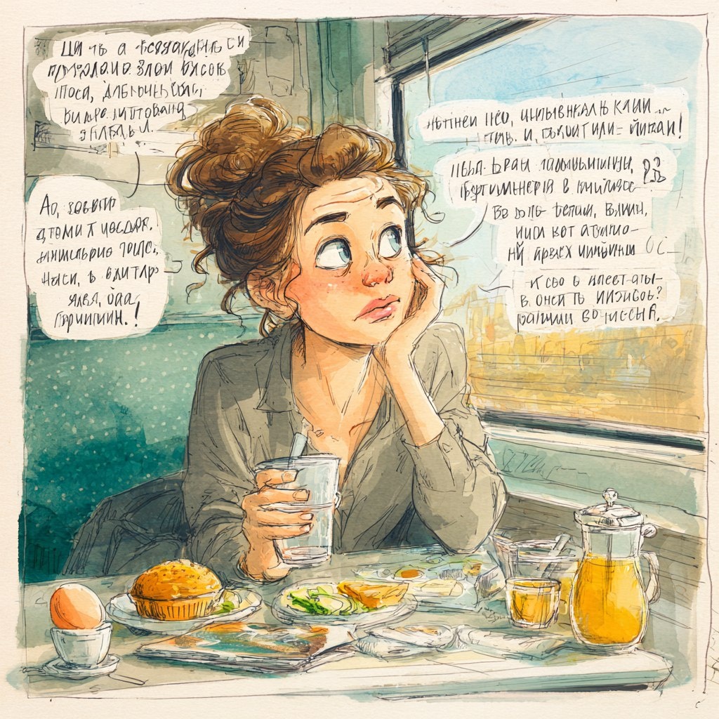 Глянула в зеркало — и чуть не распрощалась с самооценкой. На меня глядело нечто опухшее, с глазами где-то в глубине черепа. Это, кстати, потом стало моим стандартным «поездным лицом». Почему — загадка. Но факт.