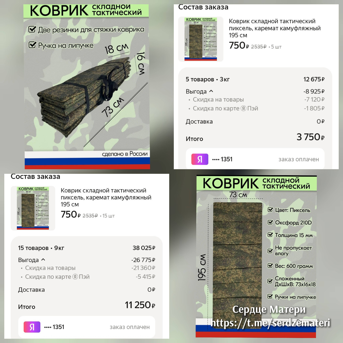 ❗🇷🇺 Заказали коврики Карематы складные. Кол-во пока 20 шт, знаю что этого мало.... Там батальон.... Не один человек... После пожара остались без имущества. С Божьей помощью со всеми трудностями справимся. 🙏🙏🙏 Одежду сейчас нужно заказывать, ребята остались без сменной. Пока решится вопрос по списанию через командование, пройдет время, а у ребят этого времени нет и передают друг другу что есть. И бронезащиту так же, передают друг другу, поддерживают. 🇷🇺🫡 Устала ли я? - Дико устала, но прошу у Бога сил и помощи, и Бог дает. 🙏👼🕊 Вера, наверное вера и помогает выстоять. 🙏 💫Спасибо всем, кто принимает участие! 🇷🇺 💫Спасибо всем, кто молитвой вымаливает ребят у этой смертельной войны.🙏 💫Спасибо каждому, кто заглянув в свое сердце найдет там частичку любви и передаст ее на фронт, свою любовь и заботу. ❤️ Жизнь дана нам для Чуда, так будем же творцами этого Чуда !!! ❤️🕊👼 🙏🙏🙏 2202208179949418 89163290090 ТЕЛЕГРАМ КАНАЛ: