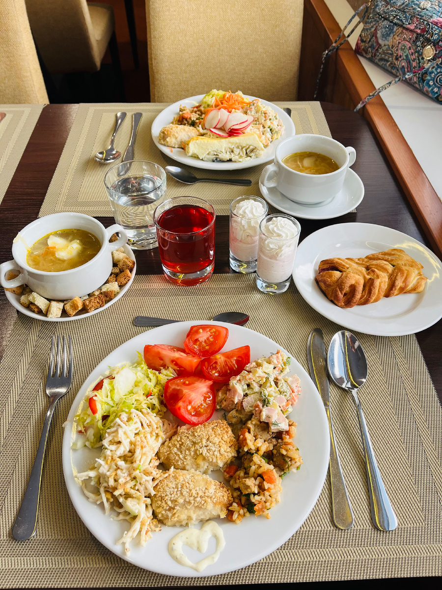 Итак, я ездила на 5 дней в речной круиз на теплоходе «Княжна Анастасия» из Питера в Москву. Питание было по системе «шведский стол» и удивительно, но было вкусно! Честно говоря, я этого совсем не ожидала. Давайте расскажу, что было из еды и какие блюда больше всего понравились.