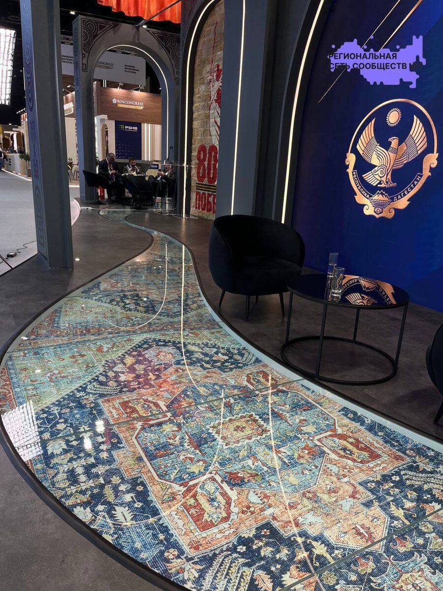 Аутентичная ковровая дорожка ведёт нас прям к футболу. Погонять мячик на экономическом форуме — топ!