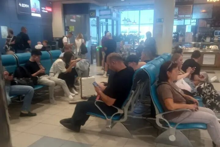 Пока никакой информации о вылете рейса нет. Пассажирам остается только ждать.