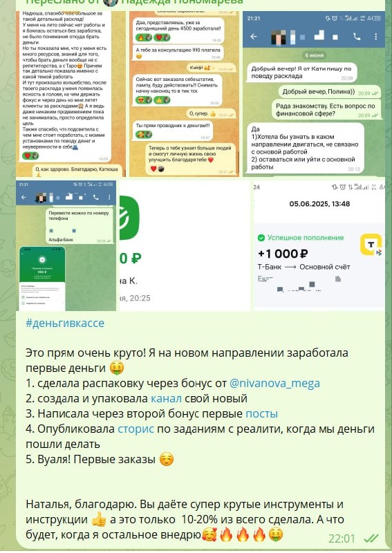 Как из нуля сделать первые деньги за 4 дня — когда ты не просто "мечтаешь", а реально строишь воронку Результат от одной из участниц. Никакой магии. Никаких "посадила мани-дерево и утром сняла урожай". Просто: ✅ Сделала распаковку ✅ Упаковала свой канал ✅ Написала первые посты ✅ Выпустила сторис по шаблону И БАЦ — первые переводы, первые заказы, первые деньги ⠀ 🙂Причём всё это — с нового направления. ⠀ И самое интересное — это было сделано по системе, которую мы собирали. Пошагово, просто и с помощью нейросетей. ⠀ Да, у нас там были нейросети. ИИ подсказывал, как достать основные смыслы, сформулировать оффер, помогал писать контент, генерил идеи для сторис, и даже участвовал в скриптах диалога. Но если бы была только нейросетка — был бы просто набор текстов. ⠀ ⭐️А у нас — связка: — стратегия, — структура воронки, — человеческий подход — + ИИ, который экономит 80% времени. 📍Вот это и есть новая формула воронки: 🧠 AI как топливо + 💬 ты как навигатор = 💸 результат ⠀ Воронка — это
