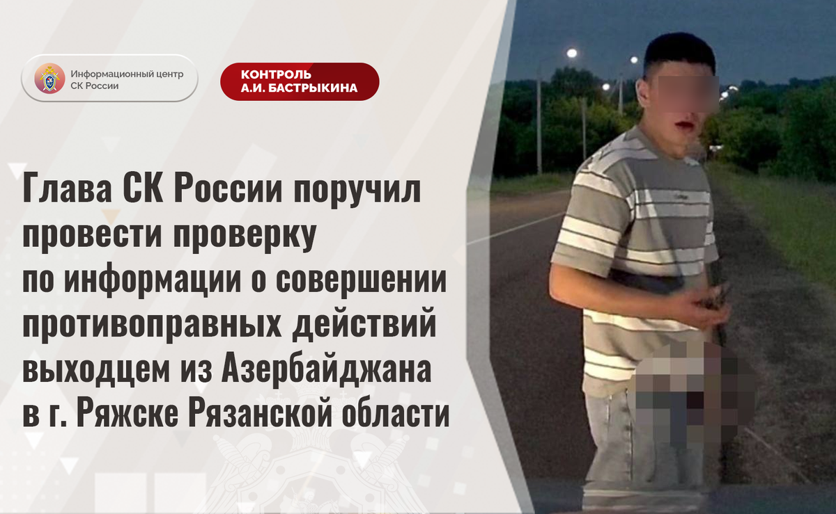 Глава СК России поручил провести проверку по информации о совершении противоправных действий выходцем из Азербайджана в г. Ряжске Рязанской области