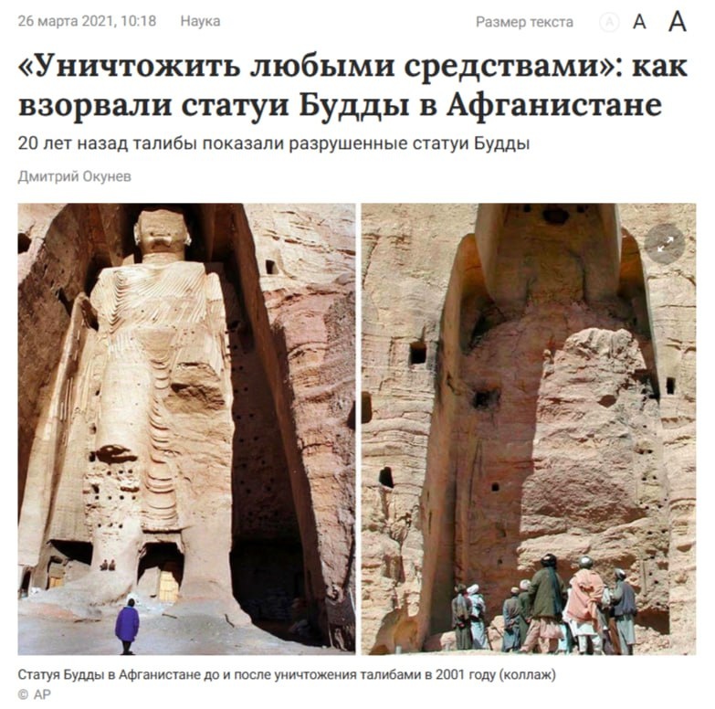 А у нас друзья, на повестке - талибы. Снова талибы. Таки-да! 🤨 Видосик, где развеваются флаги: На площади перед основной площадкой ПМЭФ повесили флаг Талибана. 🤨 Видосик, где идут талибы говорит сам за себя 🤨 Большой видос, где рассказывается, как, 20 лет назад, талибы уничтожили 1500-летних будд, воздвигнутых ещё при Кушанской империи (давно и неправда). Ну и фотка подтверждающая: было! 🤨 А, если бы они разрушили, скажем, пригороды Ленинграда, вы бы тоже им простили? 👍 Bonus: (взял из Газеты.Ру) На площади перед основной площадкой ПМЭФ заметили флаг Талибана. Однако организация все еще в списке террористов ФСБ. За демонстрацию ее символики могут наказать, заявил «Газете.Ru» адвокат талибов Александр Молохов. Однако может ли грозить наказание вывесившим флаг, юрист не уточнил. «Теоретически да, практически – нет», —сказал Молохов. Suum cuique Wars not make one great Democracy Dies in Darkness #хайп_дня Рогов Илья 🇷🇺
