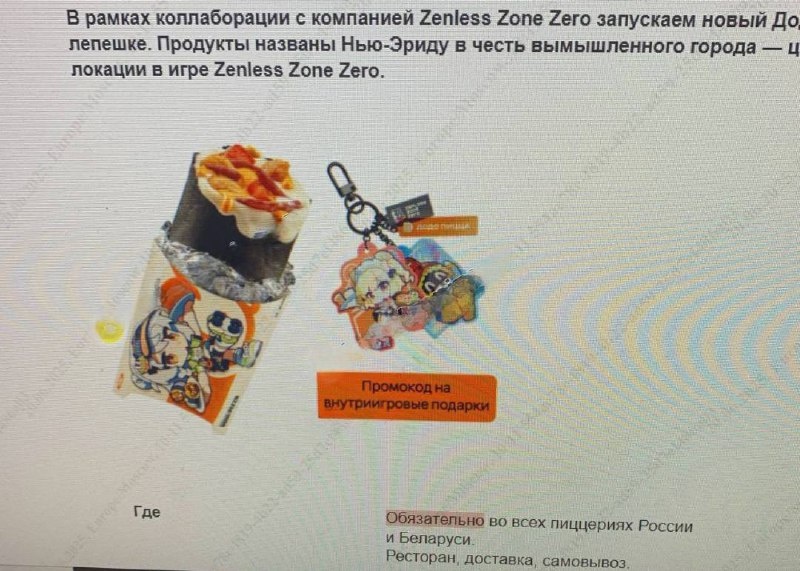 Додо Пицца залетает в коллаб с Zenless Zone Zero! В сеть уже слили концепты новых игрушек и эксклюзивного меню.