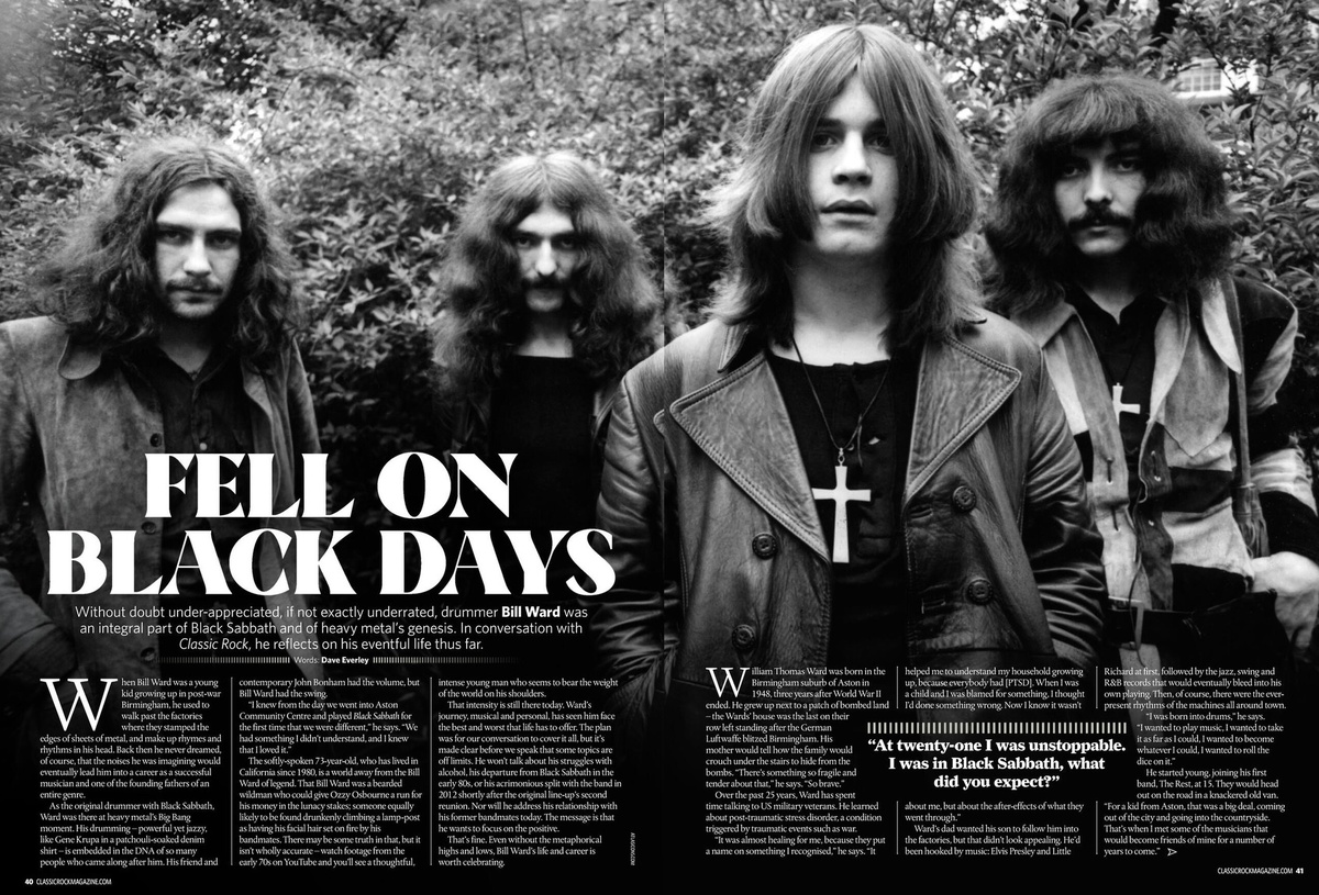 Билл Уорд и Оззи Осборн жили по разные стороны от футбольного поля клуба Aston Villa и никогда не встречались, пока потенциальный фронтмен не разместил объявление в местном музыкальном магазине: «Оззи Зиг ищет группу, владеет собственной акустической системой». С тех пор прошло более полувека, но в голосе Билла проскальзывает нежность, когда он говорит о своем бывшем товарище по группе.