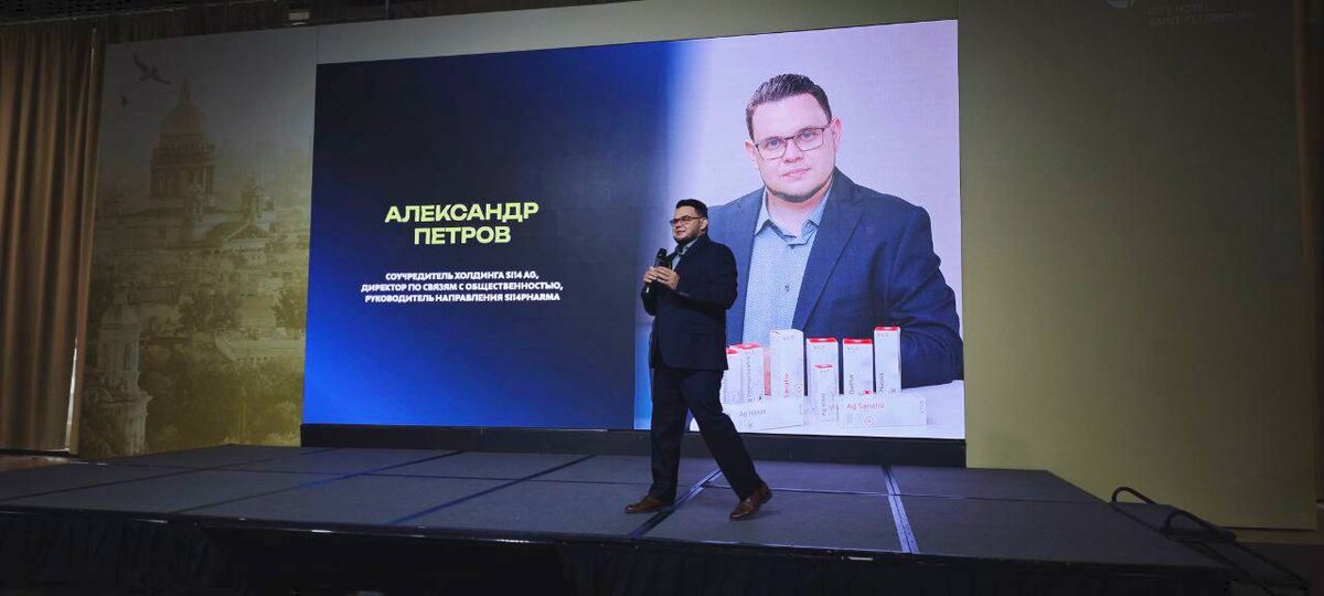 Александр Петров, соучредитель SA14 Ag, выступает на сцене с темой "Здоровье будущего".