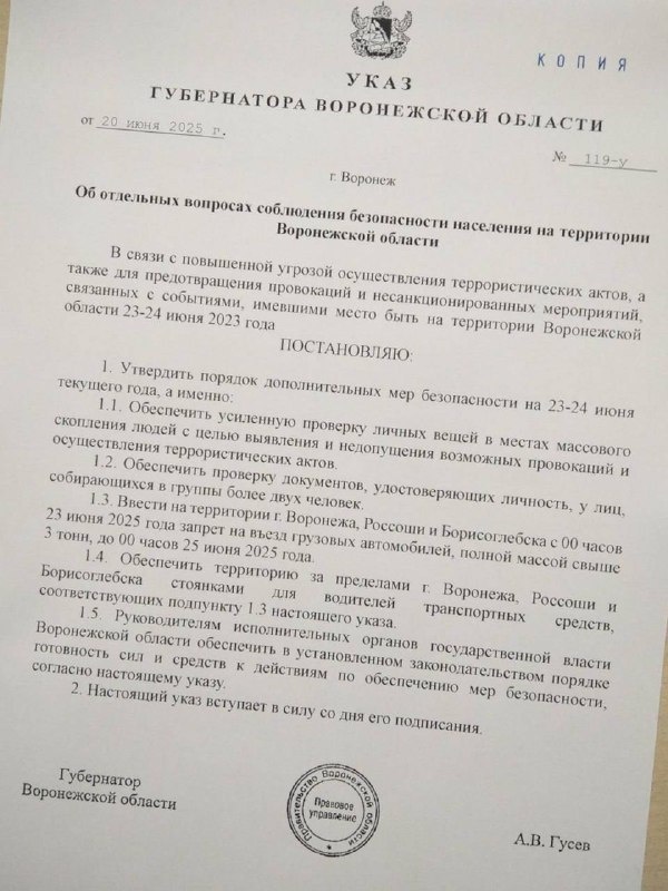 В Воронеже распространились слухи о повышении мер безопасности после теракта. Власти опровергли эту информацию, указав на ошибки в документе. Доверяйте только официальной информации.