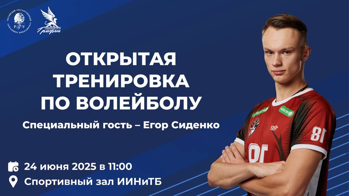 🏐 24 июня в 11:00 в спортивном зале корпуса ИИНиТБ состоится открытая тренировка по волейболу. 🐻 Специальным гостем мероприятия станет игрок волейбольной команды «Кузбасс» Егор Сиденко. ⚡ Егор Сиденко – 25-летний диагональный нападающий, который в сезоне 2024/2025 выступает за кемеровский клуб. Ранее он играл за «Нефтяник» (Оренбург), где стал главным бомбардиром команды, набрав 348 очков в 31 матче. По итогам прошедшего чемпионата России суперлиги Егор вошёл в десятку лучших бомбардиров чемпионата набрав 429 очков. 🏆 За свою карьеру Егор становился победителем Кубка Вызова, молодёжного чемпионата Европы и Кубка молодёжной лиги. 🔥 Тренировка будет открытой – принять участие могут все желающие независимо от уровня подготовки. Это отличная возможность для всех любителей волейбола получить профессиональные советы от опытного спортсмена и потренироваться под его руководством. 😎 | ⚪ Организатор мероприятия Спортклуб «Грифон» Департамента по работе с молодёжью при поддержке кафедры