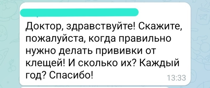 -Вакцинация против клещевого энцефалита. Курс состоит из двух доз, т.е. двух инъекций. Их вводят с интервалом 1-7 месяцев. Лучше всего проводить вакцинацию с осени по весну до наступления тепла. Если не успели, можно сделать в любое время года. Ревакцинацию проводят через 9-12 месяцев. Затем каждые 3 года перед сезоном. -Если вы делаете прививку летом, т.к. это эпид сезон, вакцинация может быть проведена по ускоренной схеме. Тогда интервал между первой и второй дозой сокращается до 2 недель. Ревакцинация проводится также как и при обычной схеме через 9-12 месяцев один раз и каждые 3 года перед началом эпид сезона. канал о вашем здоровье. Подписаться на Пикабу Познавательный. и Пикабу: Истории из жизни.