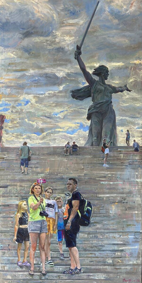 Братья Дмитренко “Вспышка” 2025 г. Холст, масло 200 х 100 см. 200 бесконечных ступеней. Это наша память и движение в будущее. Подписывайтесь на канал «интеллектуальный реализм» вам понравится!